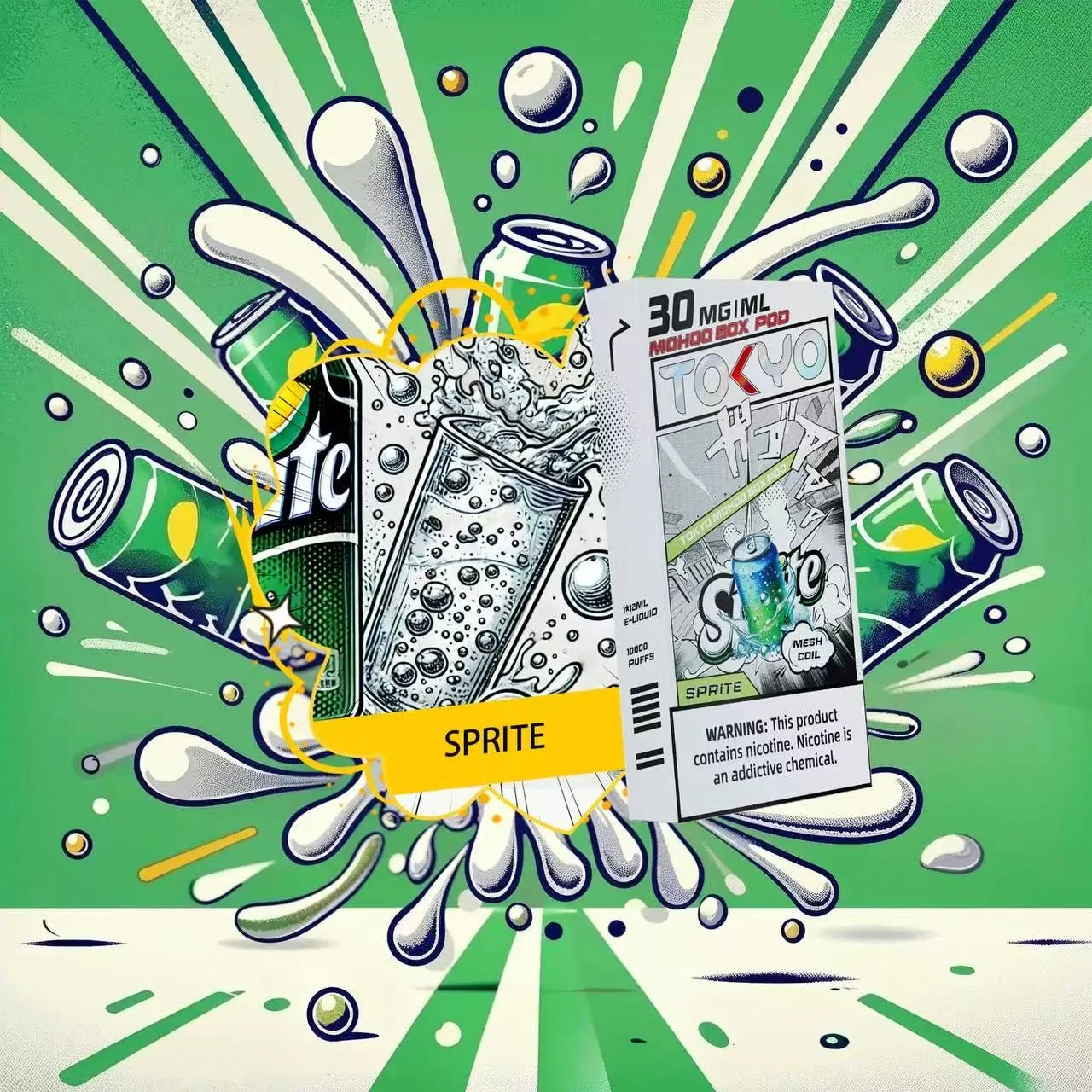 雪碧口味 東京魔盒電子煙彈的口味特性是清爽、刺激,帶有雪碧獨特的甜味和碳酸飲料的涼快感,讓您在吸食時感受到一絲清涼和活力。