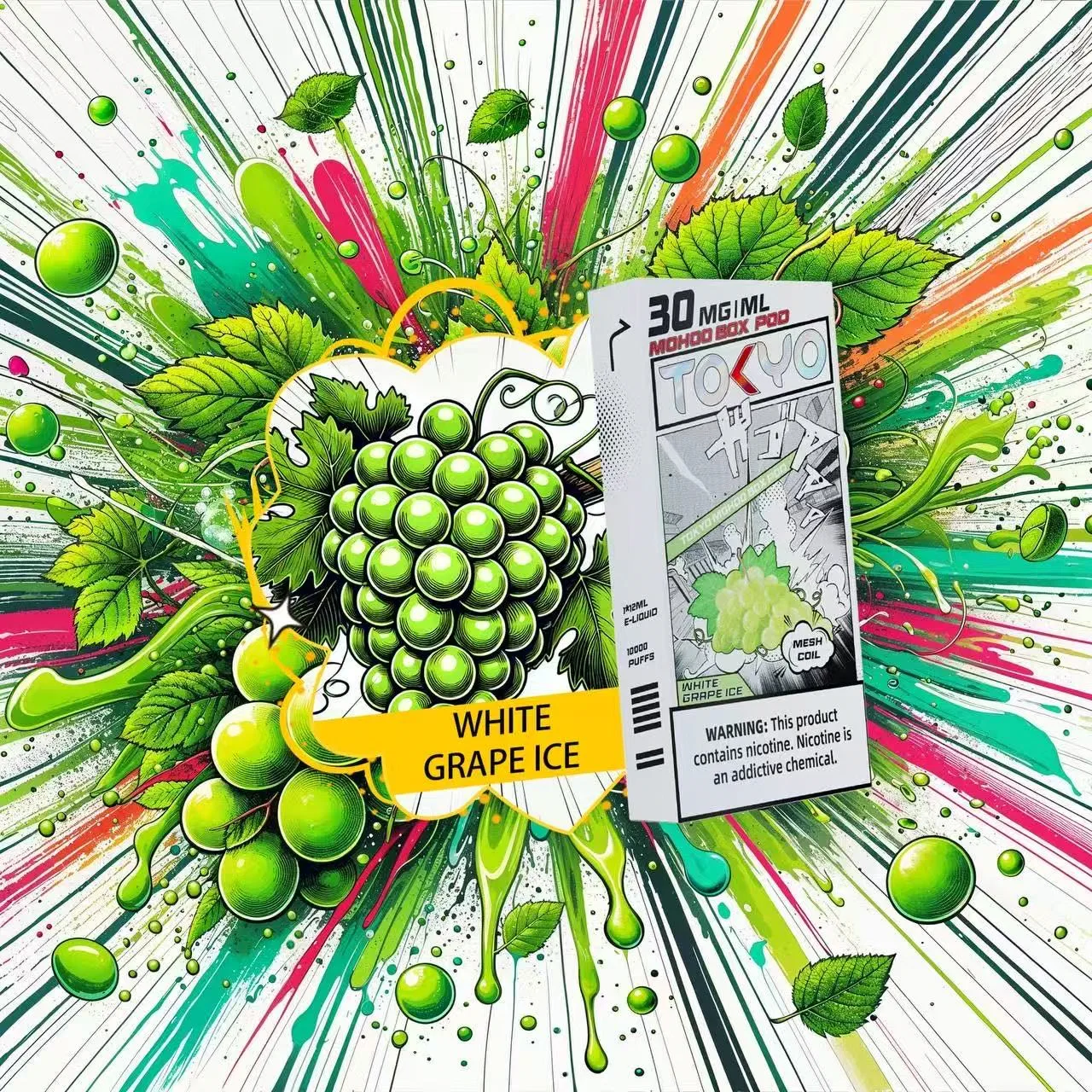 東京魔盒電子煙煙彈採用植物甘油與丙二醇基底,搭配高純度尼古丁鹽,容量 12mL、尼古丁強度30mg/mL(3%),搭載 1.0Ω 鋼網棉霧化芯,設計為一次性 pod,約 10,000 口吸引力持久。